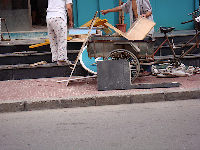 Beijing recycling program (see the guy squatting with the big yellow bag?)